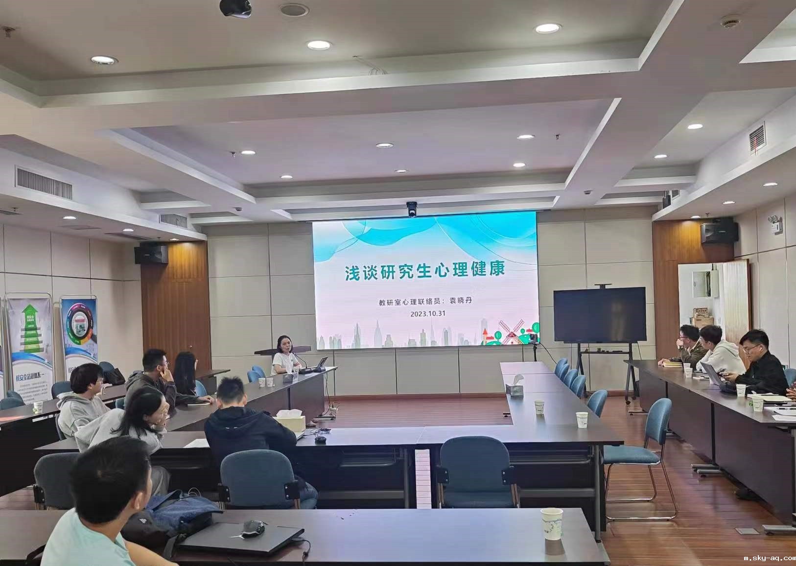 熔盐堆工程技术教研室辅导员袁晓丹作《浅谈研究生心理健康》专题报告。袁晓丹代表熔盐堆工程技术教研室对2023届新生入学表示欢迎,研究生围绕自己从事的课题研究工作、个人兴趣爱好等方面进行了自我介绍。之后,袁晓丹对在座学生进行了心理健康评估测试,并围绕学业压力、人际压力、就业压力、经济压力四个方面讲述了当前研究生存在的心理问题的征兆及诱因,介绍了心理健康和精神疾病之间的双向关系,针对学业拖延问题提出了应对方法,鼓励学生克服畏难情绪,勇敢迈出第一步。并且以如何缓解焦虑、抑郁等提出了心理自我维护小建议,引导学生培养良好的心态习惯,用建设性的心态看待事物,向研究生提出了心理健康咨询求助途径。